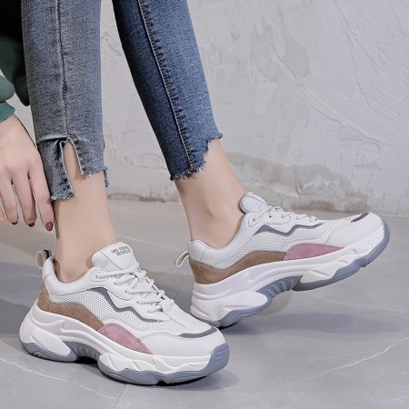 Women's Spring New Trendy Mesh Breathable Thick-Soled Increased Sports Casual Shoes