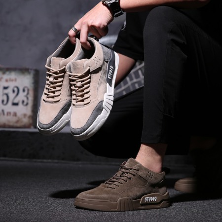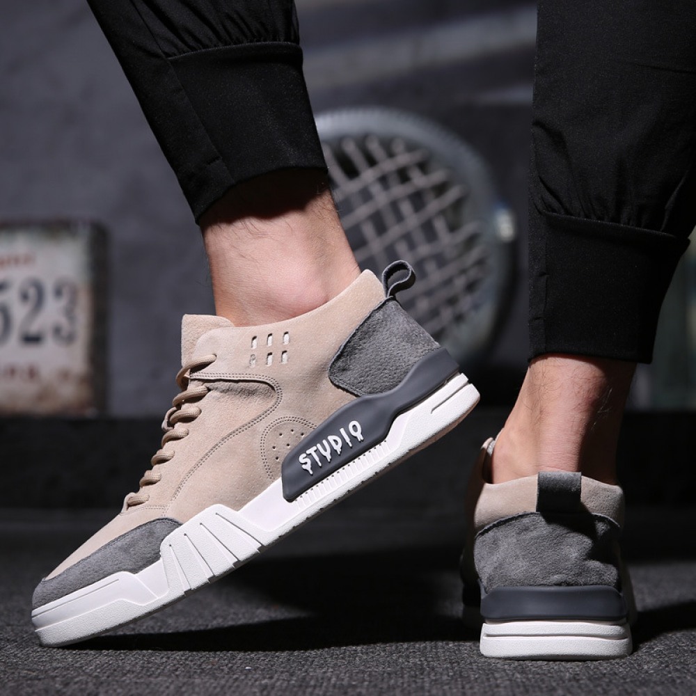 Men's Spring New High-Top Fashion Leather Casual Board Shoes