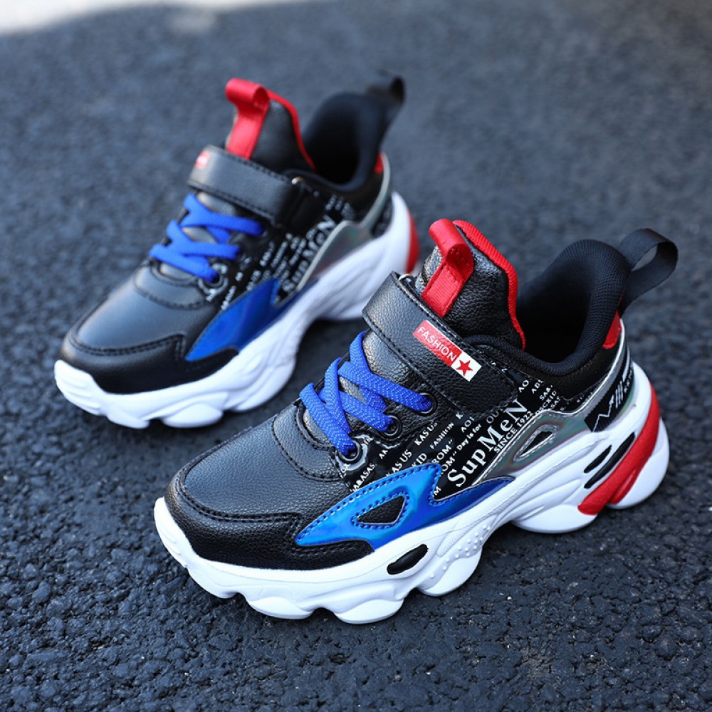 Spring New Leather Surface Velcro Shoes Increase Non-Slip Wear-Resistant Children's Sports Shoes