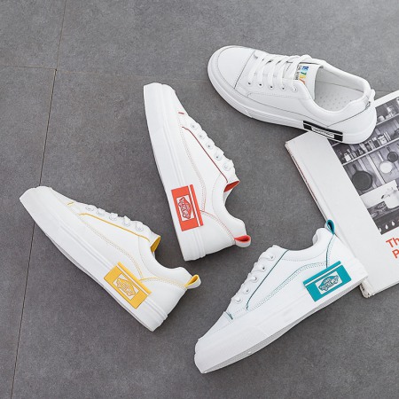 White Breathable Running Board Shoes Flat Lace-Up Shoes